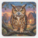 Pegatina Cuadrada Rustic Impasto Great Horned Owl