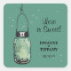 Pegatina Cuadrada Rustic Mason Jar y las luciérnagas