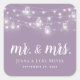 pegatinas impresos por personalizado personalizados con su cita con el Sr. y la Sra. Monograma y el boda, perfecto para las etiquetas de los favores matrimoniales, bolsos de bienvenida o sellos para sobres con sus invitaciones. El diseño presenta luces de cuerda brillantes y tarros de albañil sobre un polvoriento fondo violeta. Utilice las herramientas de diseño para elegir cualquier color de fondo, cambiar los tipos de letra y los colores del texto o cargar sus propias fotos para crear un diseño único de tipo.