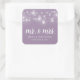Pegatina Cuadrada Rustic String Lights Mr. and Mrs. Boda Monogram