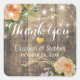 Pegatina Cuadrada Rustic Wood Floral String Lights Boda Gracias