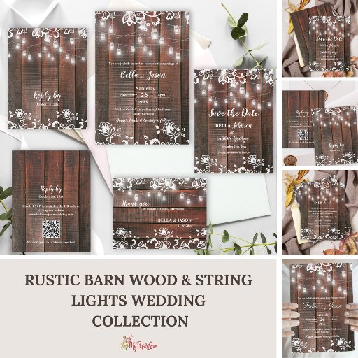 Rustic Wood & White Lace Floral Wedding SuiteDiseñado por Mypaperlove Designs