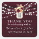 Elegante, moderno, rústico boda de madera de color burdeos gracias pegatina por los favores con monograma en la parte superior, hermosas flores acuarelas en frasco de albañil, luces de cuerda y escritura de caligrafía de moda.
