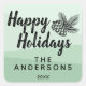 Pegatina Cuadrada Rústico Pine Cone Mint Green Felices Fiestas