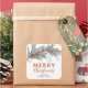 Pegatina Cuadrada Rústico Rue Red Berry Evergreen Branch Feliz Navid