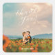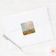 Pegatina Cuadrada Rústico Simple Azul Amarillo Poppies Acuarela