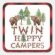 Pegatina Cuadrada Rústico Woodland gemela un feliz favor de camper