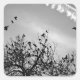 Las aves negras se posan en un árbol mientras algunos de sus miembros toman vuelo. ¡Decoración con inspiración de la naturaleza hoy!
