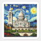 Pegatina Cuadrada Sacre-Coeur Paris France Starry Night