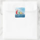 A fleet of sailboats with vibrant sails in red, green, yellow, and blue glides across a choppy sea under a clear sky