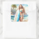 Imagen artística con chica y tabla de surf, que vive libre de deporte y diversión, en un maravilloso paisaje de naturaleza exótica.