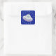 Pegatina Cuadrada Salto volador, alienígena y estrellas en azul real