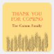 Convierte tus alimentos de acción de gracias o los productos de hornear en deliciosos favores de fiesta con la ayuda de estos temas del Día de Acción de Gracias favorecen a los pegatinas. El diseño presenta una hilera de tallos de trigo contra un fondo amarillo dorado. Personaliza con tu saludo y nombre. El día de Acción de Gracias se trata de abundancia y gratitud. Simplemente ponga pegatinas a las cajas de comida, galletas envueltas, bolsos de papel, tarros o botellas de mermelada y deleite a sus invitados al final de la noche. ¿Quieres añadir estilo y decorar tu mesa de cena de la manera más fácil? Seleccione un tamaño de pegatina mayor y úselo para mantener las servilletas acumuladas.
