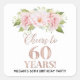 Saludos a la fiesta de cumpleaños de 60 años favorecen a los pegatinas de etiquetas con rosa de texto dorado y flores de color rosa claro.