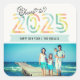 Pegatina Cuadrada Saludos a las Rayas de Cítricos de 2025 Feliz Año