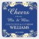 Pegatina Cuadrada Saludos al Sr. y Sra. Blue Floral Boda
