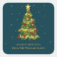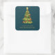 Comparte la alegría de las fiestas con esta elegante etiqueta cuadrada que presenta un árbol de Navidad con copo de nieve dorado brillante sobre un fondo teal. Preestablecido con “Saludos de temporada” y espacio para el nombre de su familia, es perfecto para sellar tarjetas de Navidad, agregar estilo a regalos o personalizar su papelería de temporada. Una elección elegante para amigos, familiares y reuniones festivas.