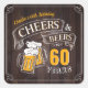 Elegantes vítores y cervezas a 60 años de diseño tipográfico en grano de madera marrón, oro y blanco, Personalizado con tu propio texto, divertido y único, ideal para cualquier fiesta de cumpleaños adulto para hombres, o fiesta de aniversario para cualquier ocasión.