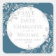Pegatina Cuadrada Salve la fecha Plata Azul Victoriano Floral Lace