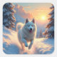 Pegatina Cuadrada Samoyed Snowy Mountain Adventure Christmas