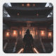 Pegatina Cuadrada Samurai in front of a Japanese temple
