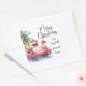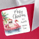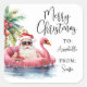 Add a tropical twist to your holiday wrapping with this square Christmas gift tag featuring a playful watercolor Santa Claus lounging on a pink flamingo floaty in the ocean, with a decorated palm tree in the background. Santa is wearing sunglasses and soaking up the sun, perfect for beach-themed celebrations or Christmases in places like Florida, Hawaii, or the Bahamas.