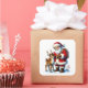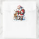 Pegatina Cuadrada Santa Claus con un ciervo amistoso en la nieve de