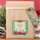 Pegatina Cuadrada Santa Claus en tren con regalos y árbol de Navidad