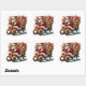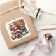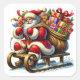 Pegatina Cuadrada Santa Claus entrega regalos en un Snowy Sleigh