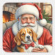 Pegatina Cuadrada Santa Claus Holding Beagle Christmas Art