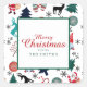 Estos pegatinas cuadrados de vacaciones cuentan con Santa Claus, renos, pinos, Mittens y copos de nieve sobre un fondo blanco. La tipografía "Feliz Navidad" está en rojo y verde. Puede personalizar el saludo y el nombre.