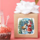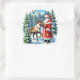 Pegatina Cuadrada Santa Claus y reno en un bosque nevado