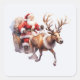 Pegatina Cuadrada Santa Cláusula con un reno tirando de su trineo