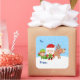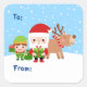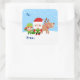 Pegatina Cuadrada Santa, el elfo y los renos hacia y desde