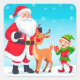 Pegatina Cuadrada Santa, Elf y reno en Navidades festivos
