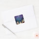 Hermosa escena de la Natividad con un ángel en el cielo nocturno con Santa Claus mirando la escena. Un regalo cristiano único para los Navidades.