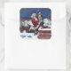 Pegatina Cuadrada Santa entregando carga de libros de Wyeth
