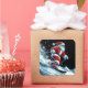 Pegatina Cuadrada Santa Esquí en Invierno Divertido!