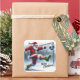 Pegatina Cuadrada Santa juega al fútbol en Winter Wonderland