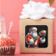 Santa Claus se sienta orgulloso, con su icónico traje rojo y su guarnecido blanco. Él sostiene un fútbol con una mano, listo para un emocionante juego.
