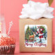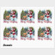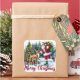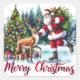 Pegatina Cuadrada Santa Patinaje con reno por árboles
