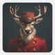 Retrato de un reno vestido con un traje oficial rojo que probablemente esté trabajando para Santa Claus. Feliz Navidad a todos