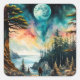 Pegatina Cuadrada Sasquatch de pie sobre una bahía de Ocean