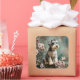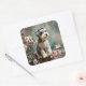 Pegatina Cuadrada Schnauzer Puppy Among Spring Cherry Blossoms