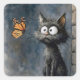 Pegatina Cuadrada Scruffy Cat Staring at a Monarch Butterfly
