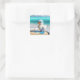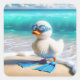 En una playa de arena hay un patinaje blanco esponjoso, con aletas azules y gafas de buceo.