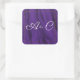 Un pegatina boda colorido y morado, adecuado para sellos para sobres (por ejemplo). Presenta un sorprendente patrón de seda morada, con un doble borde dorado y monogramas personalizados de la novia y el novio en el centro.