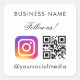 Aliente a los clientes a que le sigan en Instagram con este pegatina de código QR personalizado, que incluye su nombre de negocio, texto editable y un fondo blanco limpio. Perfecto para el empaquetado de pequeñas empresas, el uso promocional o la presentación de eventos, este pegatina moderno facilita el escaneo y la conexión. ¡Una forma elegante y sencilla de aumentar tu presencia en los medios sociales!