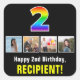 Pegatina Cuadrada Segundo cumpleaños: Arcoiris "2"; fotos y nombre d