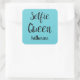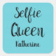Pegatina Cuadrada Selfie nombre de reina personalizado azul turquesa